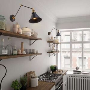 Matte Black Industrial Wall Sconce 1-Light Bell Swing Arm Desk Lamp Hardwired/Plug-In Modern Brass Wall Light