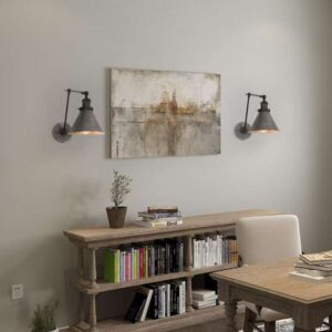 Brushed Gray Swing Arm, Modern 1-Light Black Bell Swing Arm Plug-In Wall Sconce Desk Lamp Hardwired Bedroom Lamp(2-Pack)